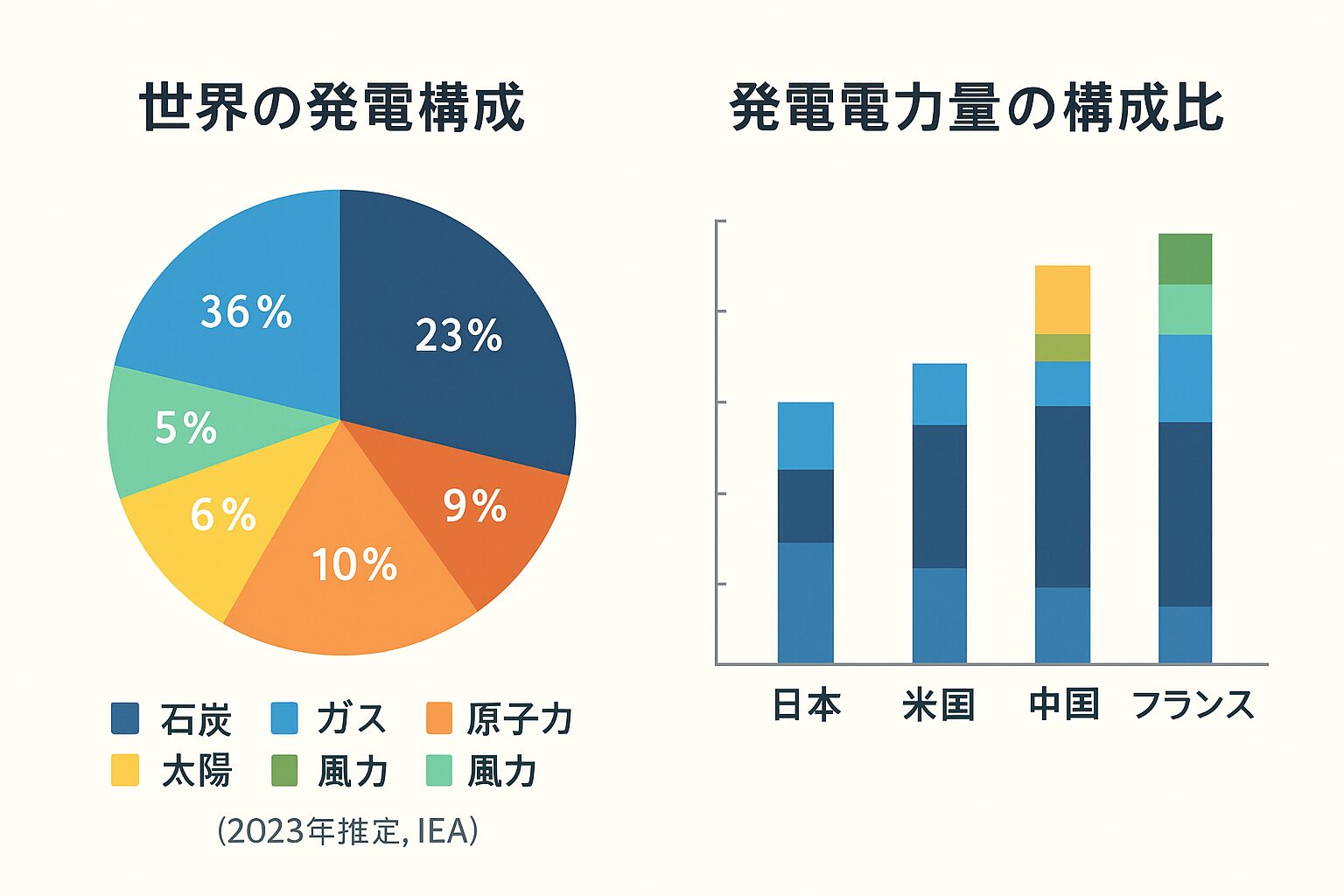• 米国:天然ガスと再エネが主力、原子力は約18%。